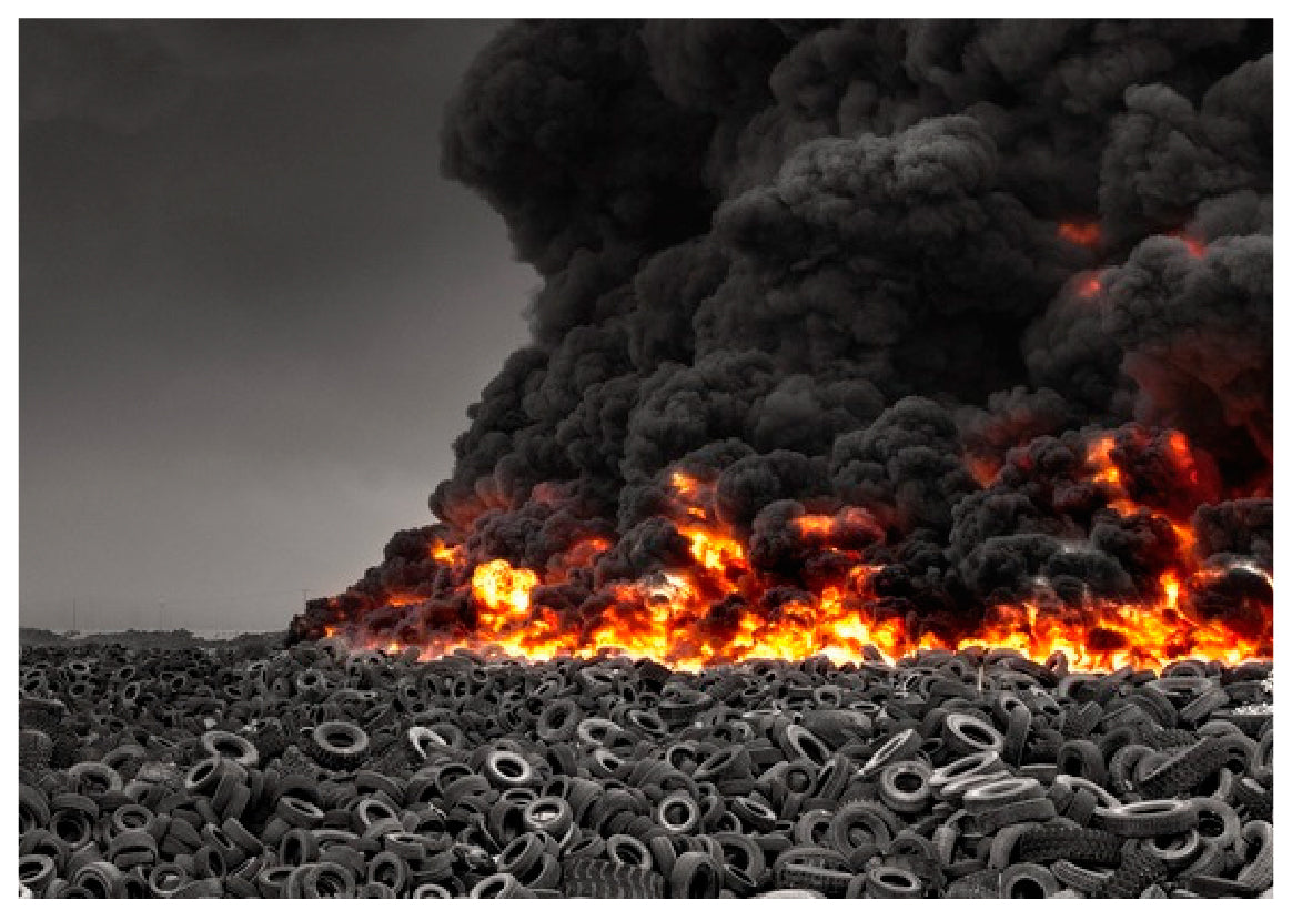 En algunos países en vías de desarrollo, los neumáticos se utilizan como una alternativa económica al combustible. Esto, junto con los neumáticos que se incendian debido a las tormentas eléctricas, da como resultado aceites y humos tóxicos que son dañinos para la salud humana. Tenemos que actuar rápido.