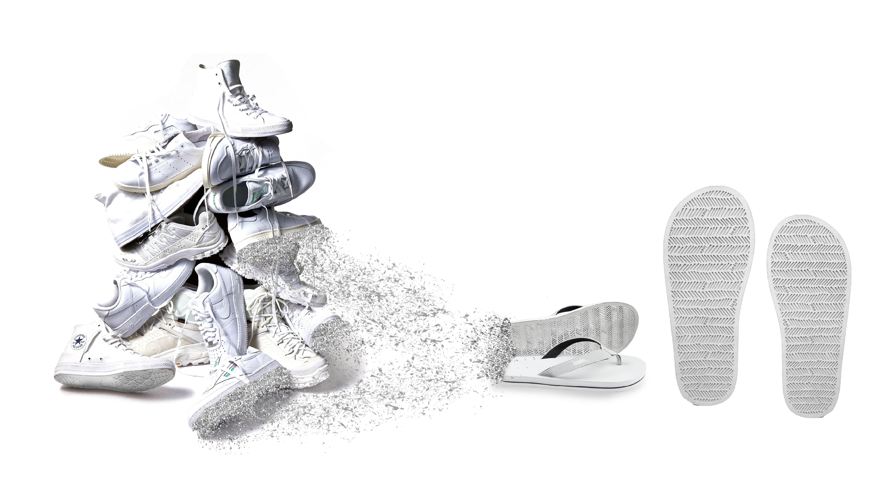 Reciclamos estos neumáticos indestructibles, convirtiéndolos en las suelas de uno de los calzados más duraderos que existe.