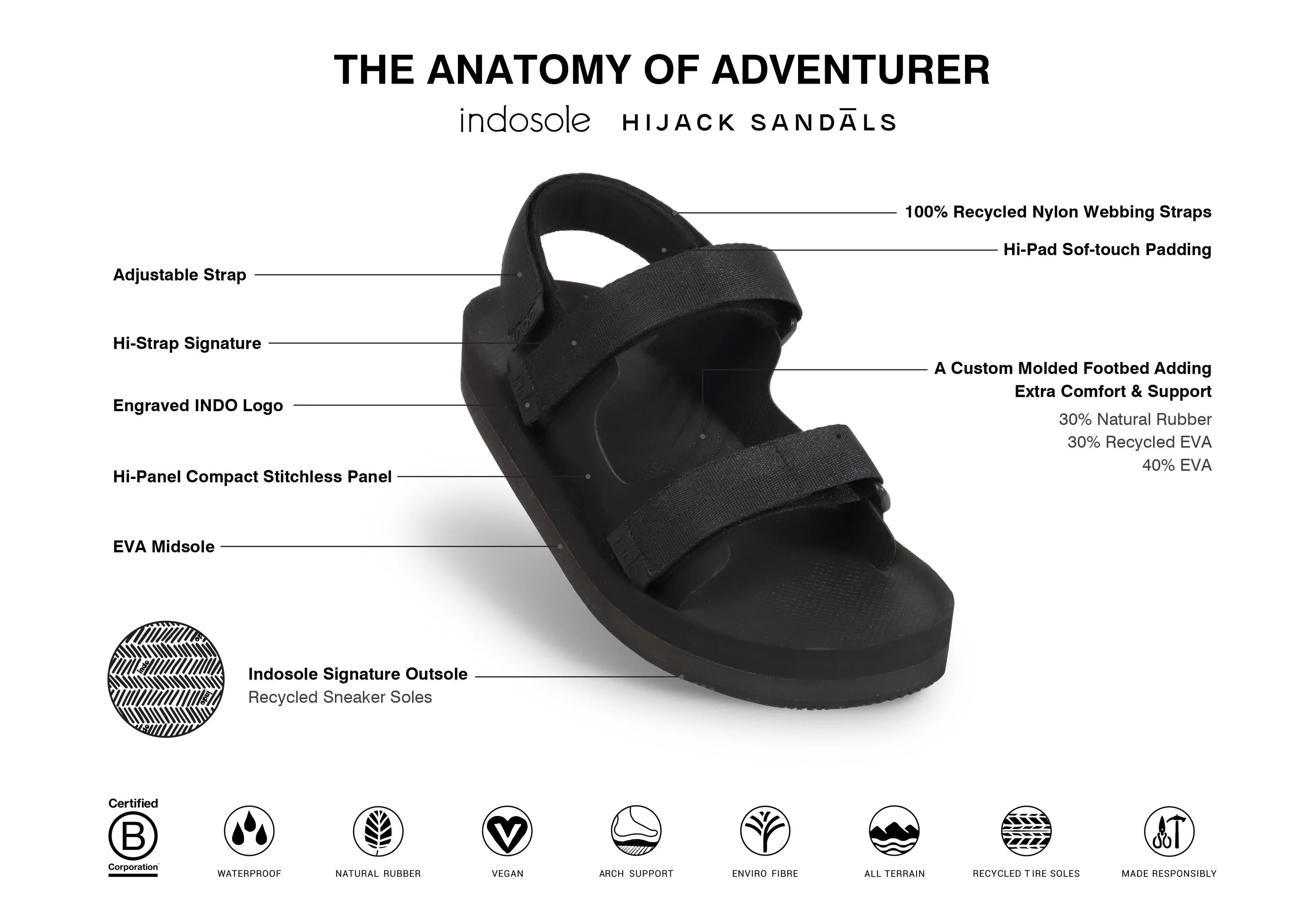 Tus pies bien firmes con el nuevo Hi-Panel sin costuras, construido con gamuza sintética y polypack para la mayor flexibilidad y durabilidad. Plantilla Hi-Flex, entresuela de EVA y la suela de tenis reciclados son la combinación perfecta para estas sandalias todo terreno.